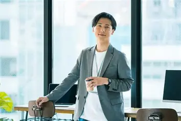 着席時は上半身が主役なので袖丈と肩幅はジャスト、色は全身で2〜3色に。